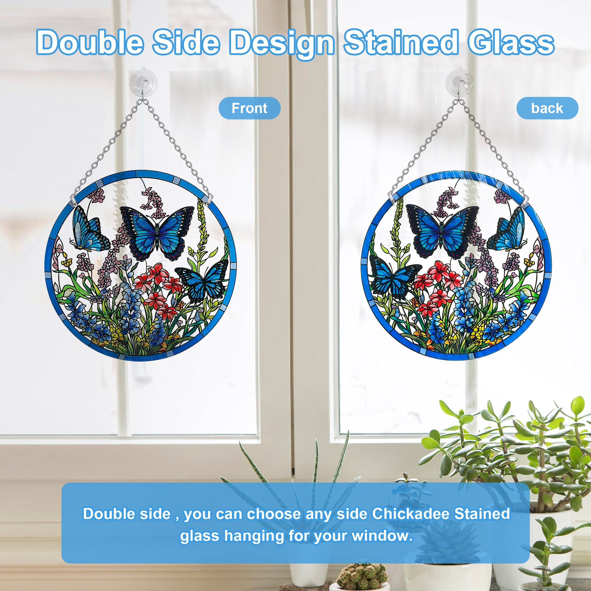 Kissnap Butterfly Stained Glass Window Hanging - Butterfly Gifts for Women, Suncatchers for Windows - Window Hangings with Chain and Hook, 8.6 inch Stained Glass Suncatcher for Mom